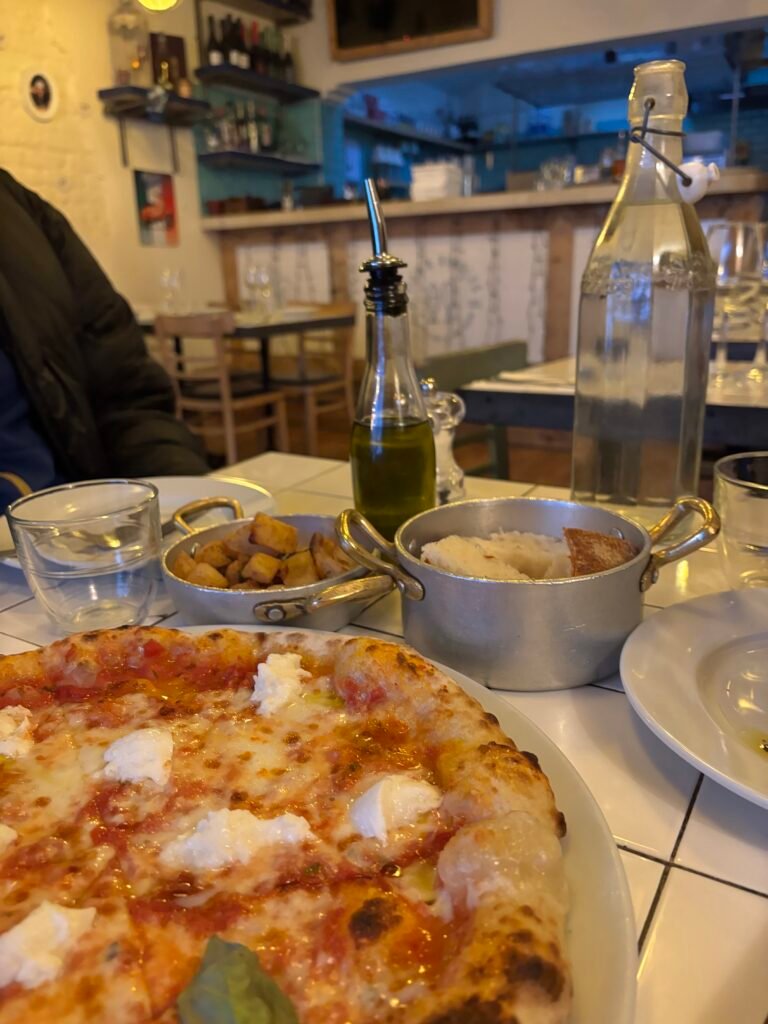 We ordered four dishes in total: two sides and two mains. The sides were focaccia bread and patate arrosto, while the mains were the bufalina pizza and the tartufina pizza.